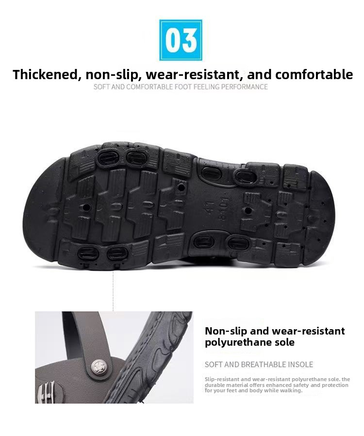 Featuring thick, durable soles, our sandals and slippers are crafted to withstand any terrain. Whether you’re exploring the outdoors or navigating urban streets, their waterproof and non-slip properties ensure reliable performance in any condition.