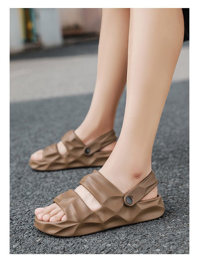 Engineered with a non-slip sole, these sandals ensure stability on wet and uneven surfaces, making them ideal for the beach or poolside. Enjoy peace of mind knowing that your steps are both secure and stylish.